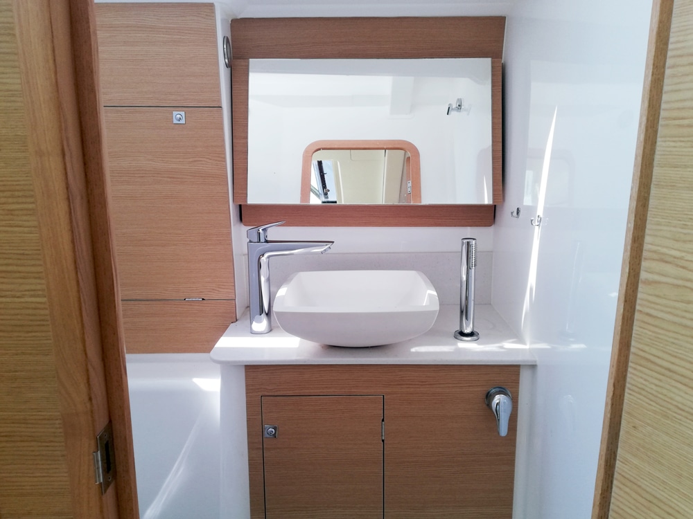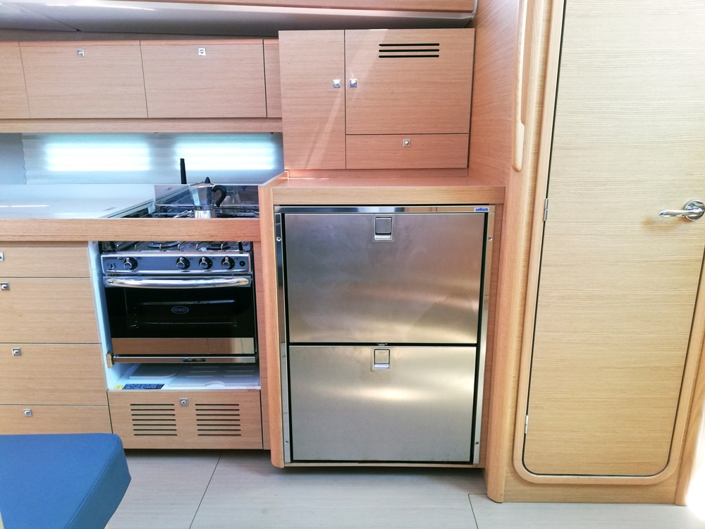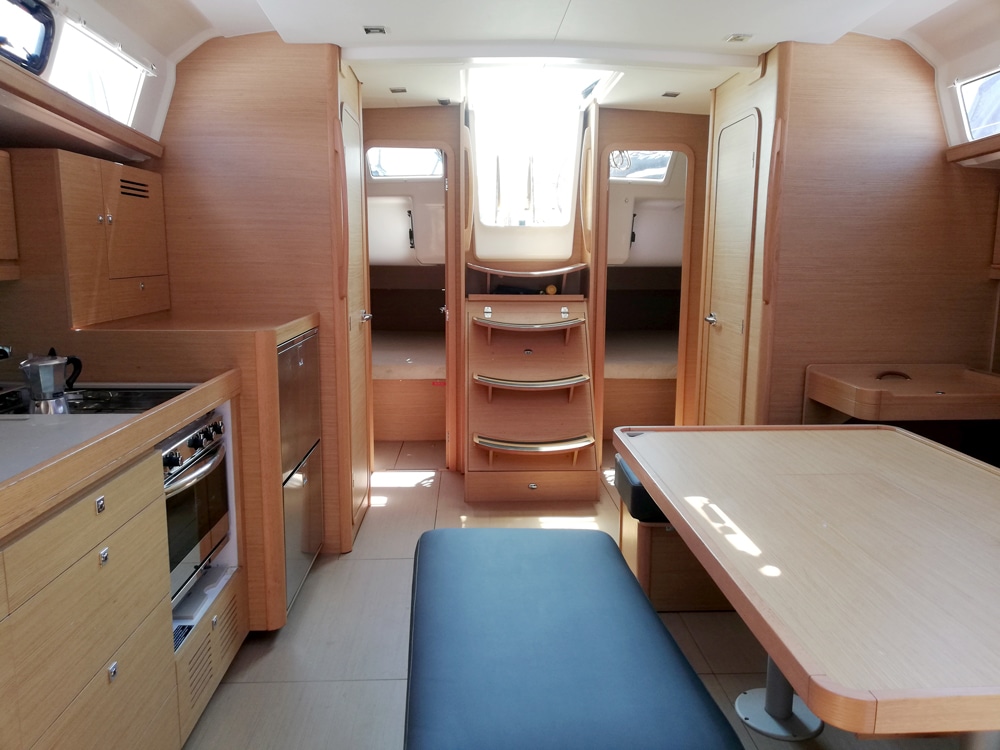 | Basic technical equipment | Teak on cockpit, bimini, spray-hood, fully battened main & roller head sail, folding propeller, jet bow thruster, dinghy + outboard, Gps plotter on cockpit, 220vlt inverter, LED lights, Electric fridge, cockpit plancha, auto pilot, speed, wind and sounder (all by Raymarine) |